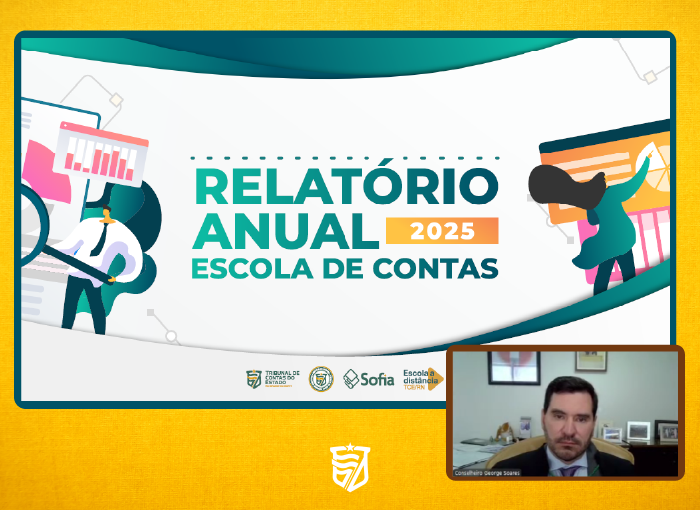 O conselheiro George Soares, diretor da Escola de Contas Professor Severino Lopes de Oliveira, apresentou na sessão plenária desta quarta-feira o Relatório Consolidado de Atividades 2025 da unidade, destacando os principais resultados alcançados ao longo do ano no âmbito do Tribunal de Contas do Estado do Rio Grande do Norte.